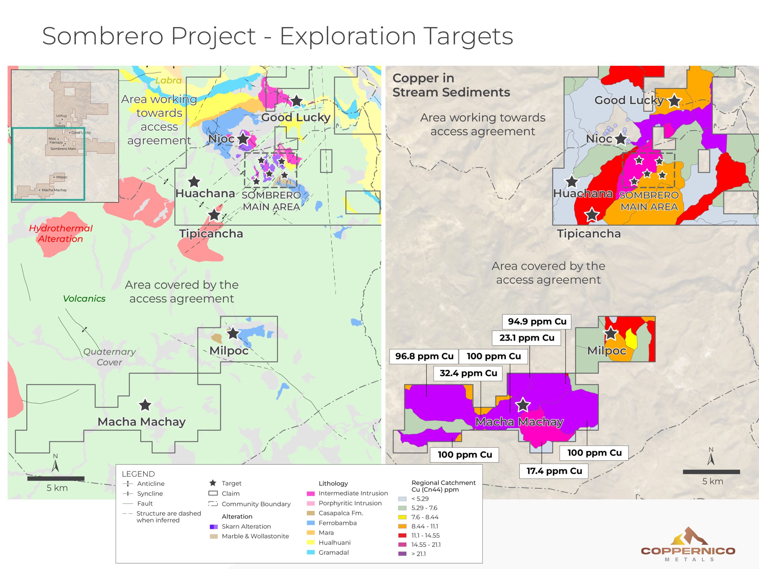 Coppernico is a mineral exploration company focused on creating value for shareholders and stakeholders through careful project evaluation and exploration excellence in pursuit of the discovery of world-class copper-gold deposits in South America. The Company’s management and technical teams have a successful track record of raising capital, discovery and the monetization of exploration successes. The Company is currently focused on the Sombrero project in Peru, its flagship project, and is reviewing additional premium projects in South America.