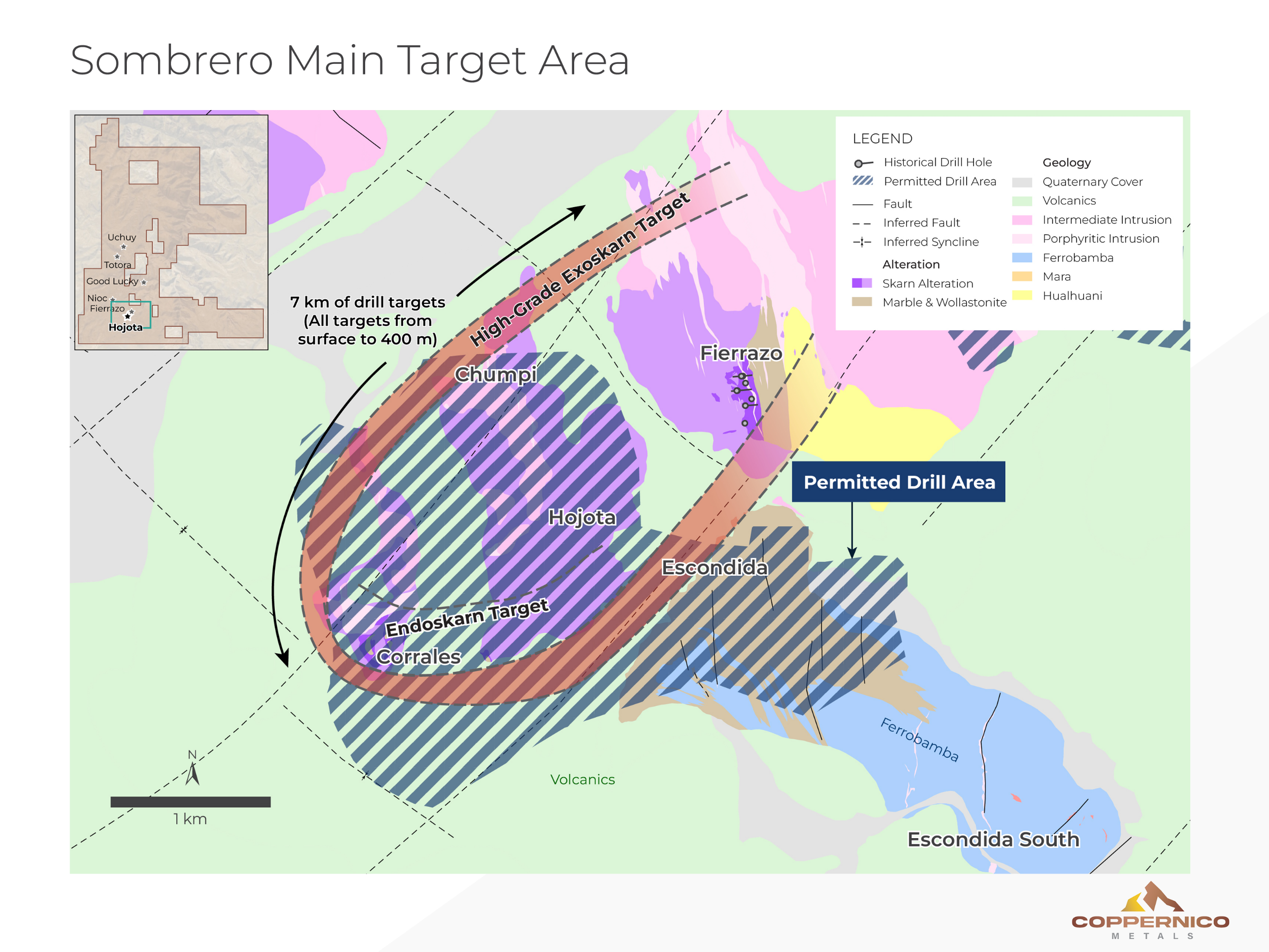 Coppernico is a mineral exploration company focused on creating value for shareholders and stakeholders through careful project evaluation and exploration excellence in pursuit of the discovery of world-class copper-gold deposits in South America. The Company’s management and technical teams have a successful track record of raising capital, discovery and the monetization of exploration successes. The Company, through its Peruvian subsidiary Sombrero Minerales S.A.C., is currently focused on the Sombrero project in Peru, its flagship project, and is reviewing additional premium projects in South America.